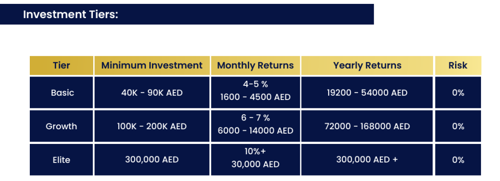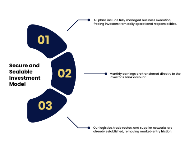 Each investment tier is crafted to deliver unmatched returns compared to traditional financial products, all while maintaining capital security. Investors receive timely reports, direct support from our Investment Desk, and flexible reinvestment options after each term. Our approach is straightforward: we grow while you earn.
